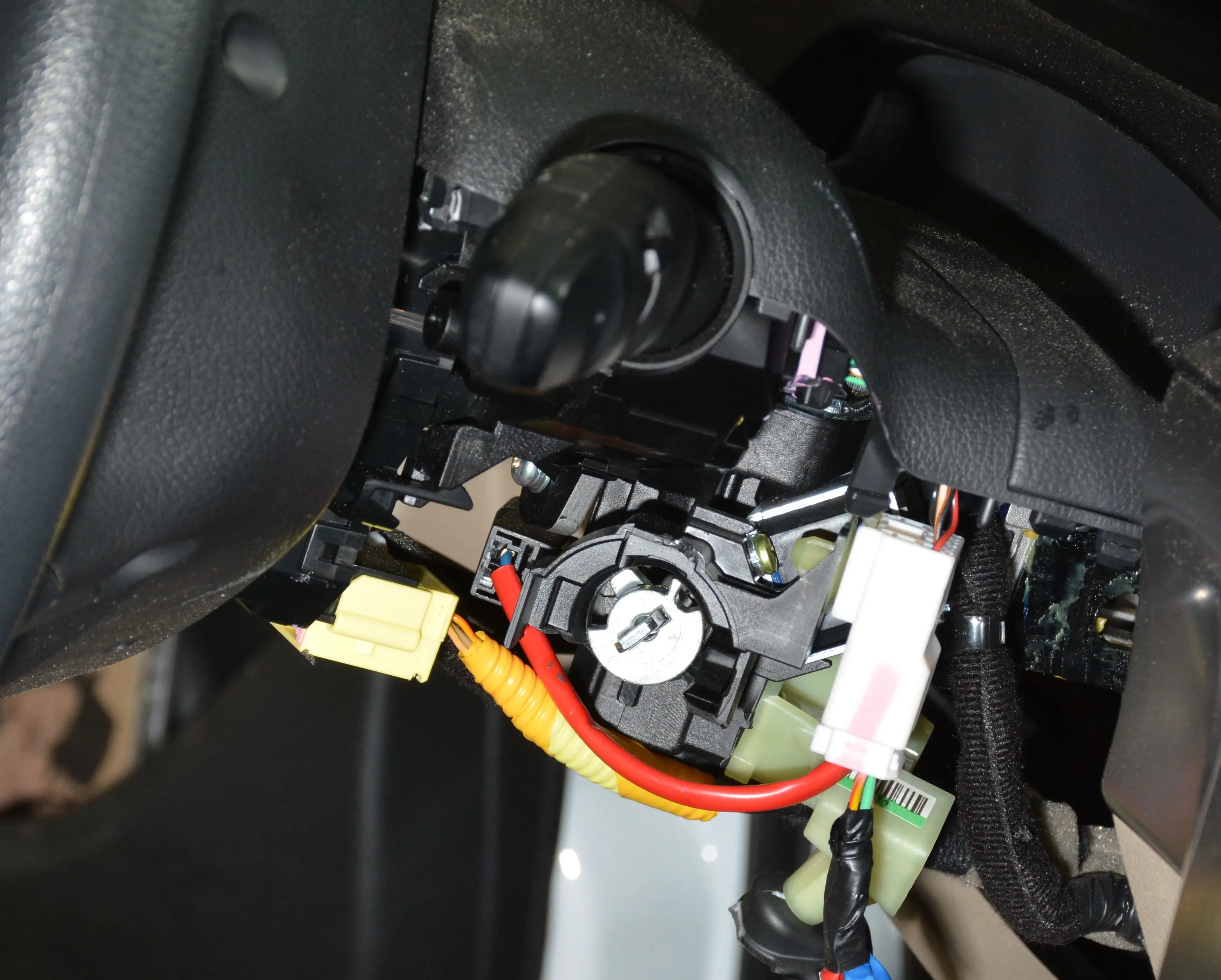 Tucked away beneath the ignition cylinder is a tiny knob ideally suited for any USB-A plug to turn and start the ignition. After breaking the window and prying open the steering column, a curious Kia Boy can use the victim’s own phone charger to start the car, a procedure that is disturbingly unsophisticated.